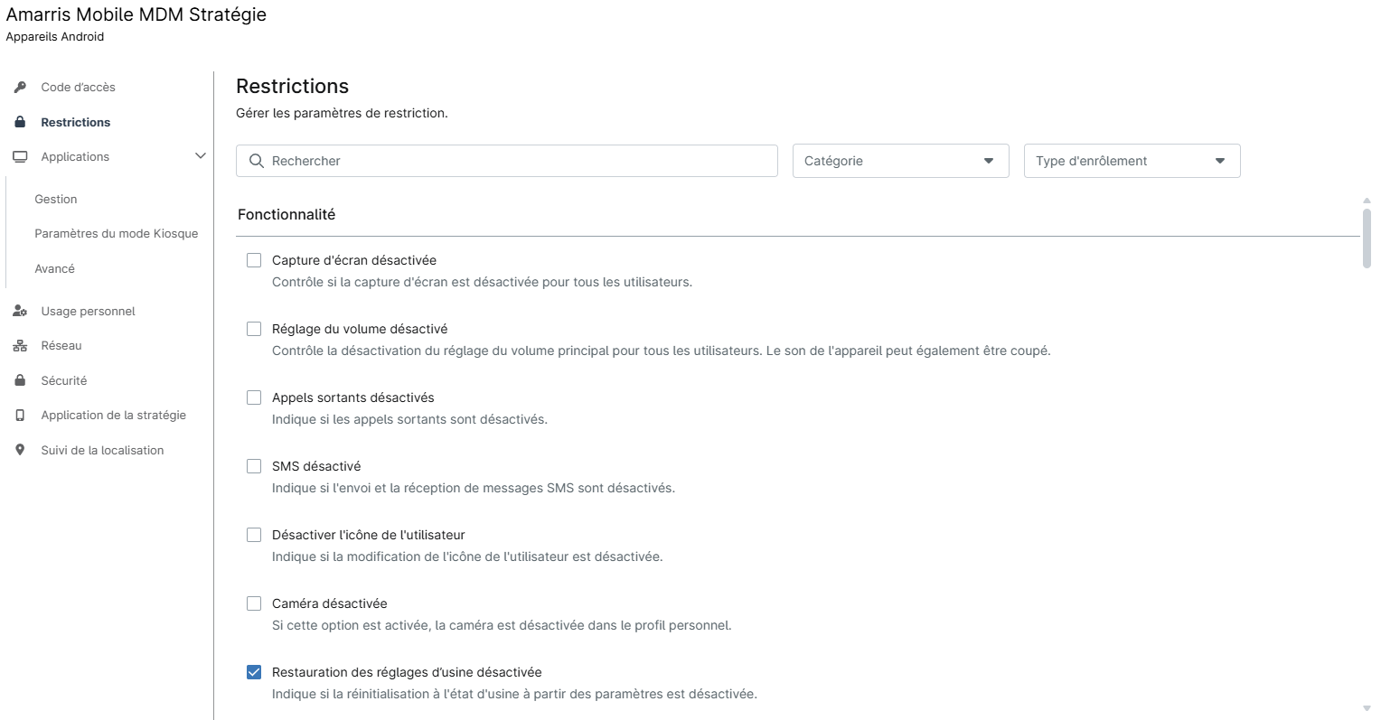 - Catégorie Gestion des appareils mobiles